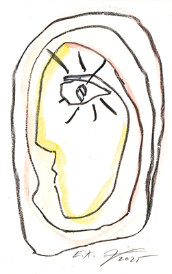Eingefasst in ganzseitigen Tuschezeichnungen des Autors und